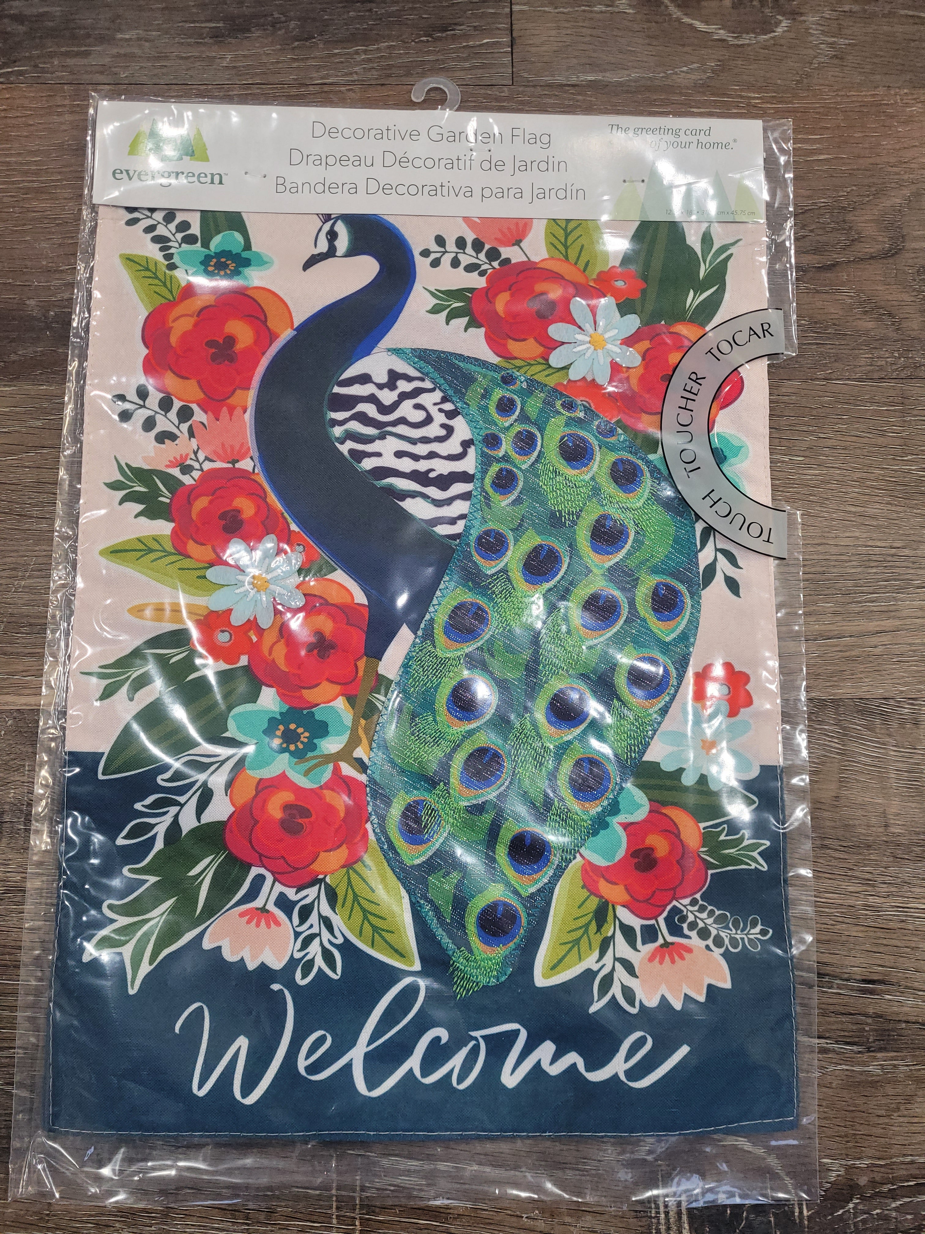 Garden Flag Floral Peacock Linen