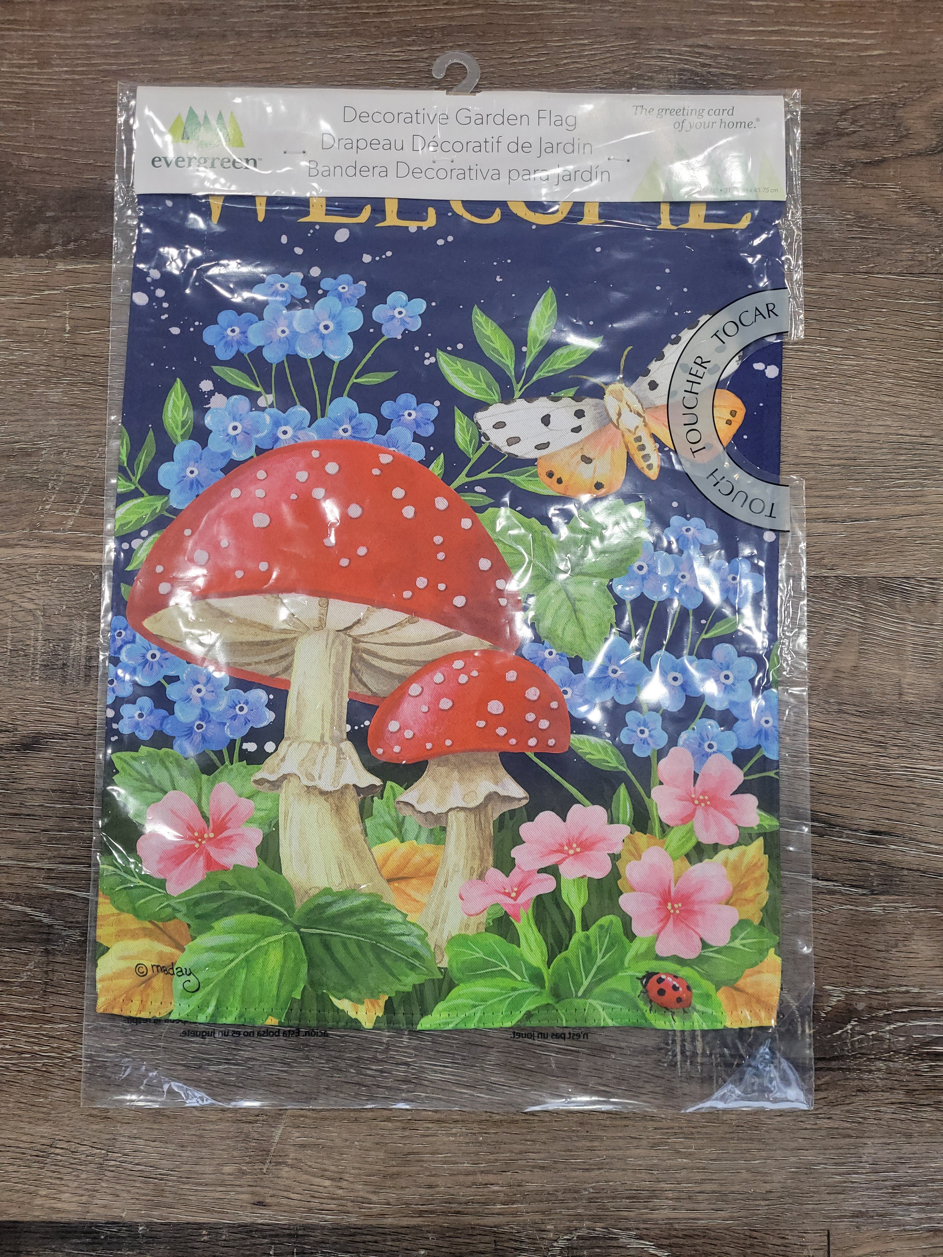 Garden Flag Welcome Mushroom Suede