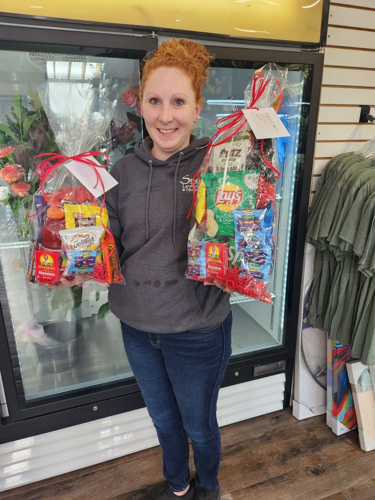 The ideal gift for the hungry special someone. This snack gift set includes a drink, chips, candy bar, and other small treats. Large includes 2 drinks and small includes 1 drink. If you have a special request with contents, please put in notes or email, text or call us.